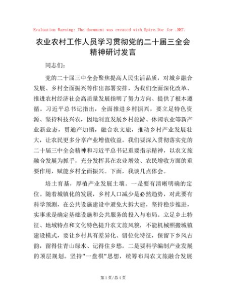 / 农业农村工作人员学习贯彻党的二十届三全会精神研讨发言