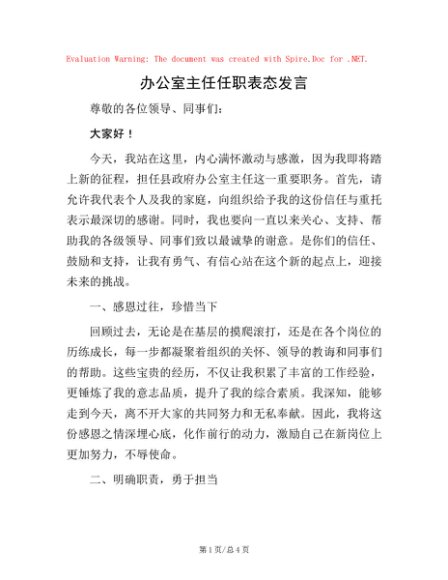 / 办公室主任任职表态发言