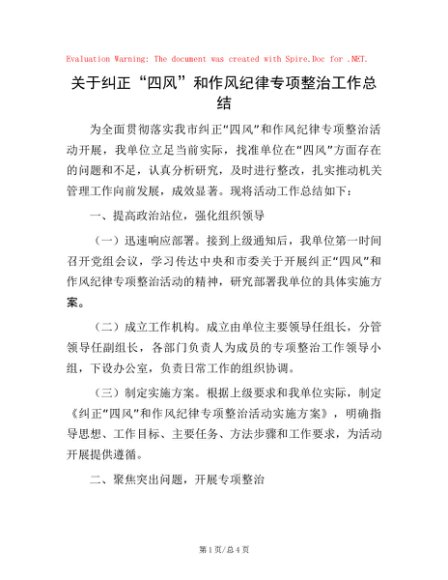 / 关于纠正“四风”和作风纪律专项整治工作总结