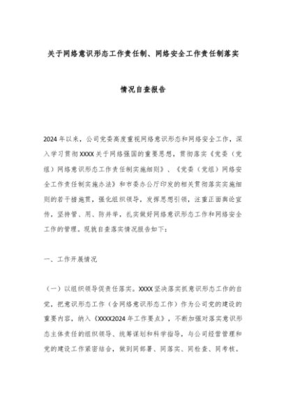 / 关于网络意识形态工作责任制、网络安全工作责任制落实情况自查报告