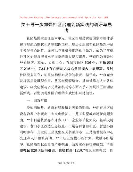 / 关于进一步加强社区治理创新实践的调研与思考