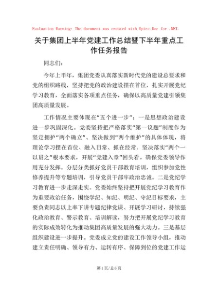 / 关于集团上半年党建工作总结暨下半年重点工作任务报告