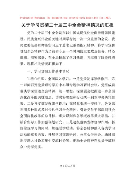 / 关于学习贯彻二十届三中全会精神情况的汇报