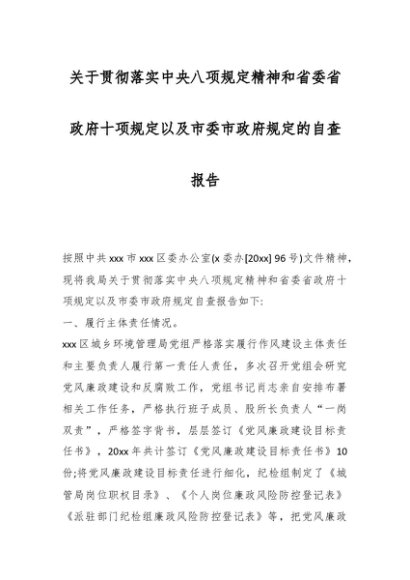 / 关于贯彻落实中央八项规定精神和省委省政府十项规定以及市委市政府规定的自查报告