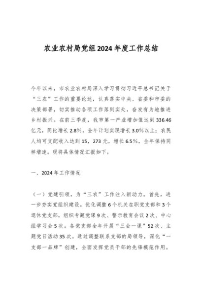 / 农业农村局党组2024年度工作总结