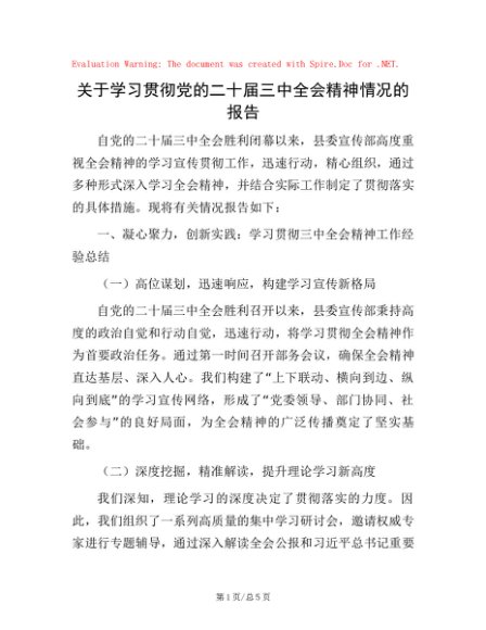 / 关于学习贯彻党的二十届三中全会精神情况的报告