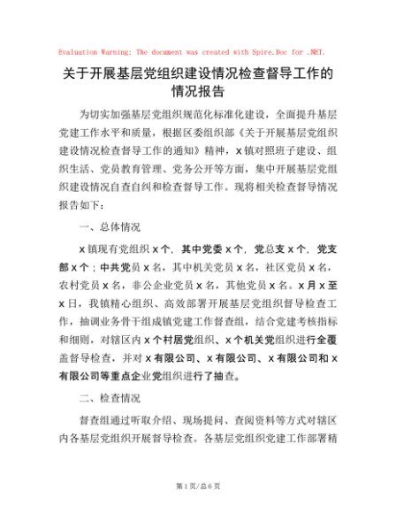 / 关于开展基层党组织建设情况检查督导工作的情况报告