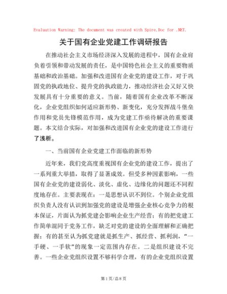 / 关于国有企业党建工作调研报告