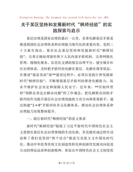 / 关于某区坚持和发展新时代“枫桥经验”的实践探索与启示
