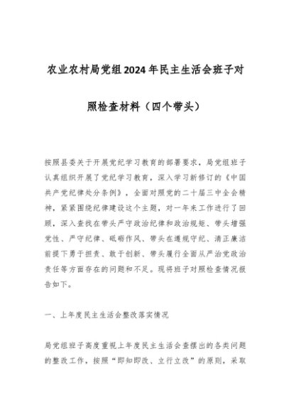 / 农业农村局党组2024年民主生活会班子对照检查材料(四个带头)