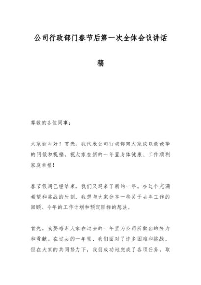 / 公司行政部门春节后第一次全体会议讲话稿