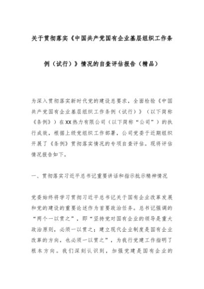 / 关于贯彻落实《中国共产党国有企业基层组织工作条例(试行)》情况的自查评估报告(精品)