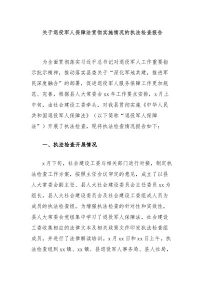 / 关于退役军人保障法贯彻实施情况的执法检查报告