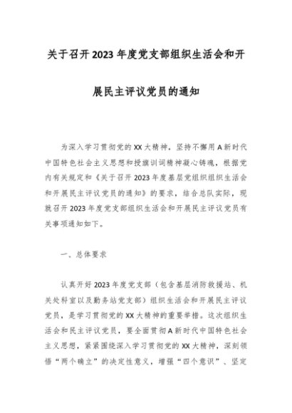 关于召开2023年度党支部组织生活会和开展民主评议党员的通知