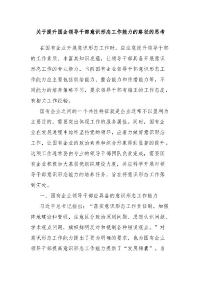 / 关于提升国企领导干部意识形态工作能力的路径的思考