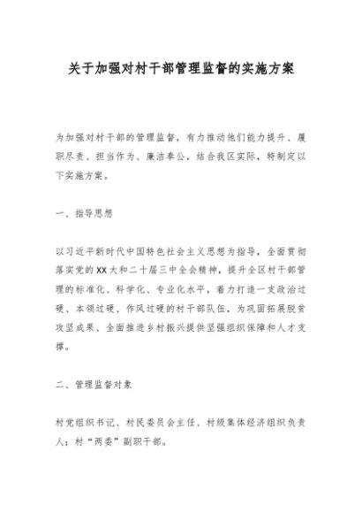 / 关于加强对村干部管理监督的实施方案