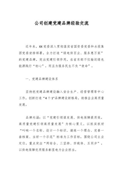 公司创建党建品牌经验交流
