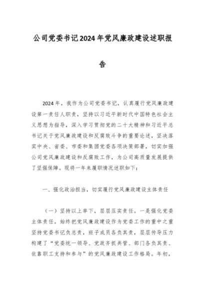 / 公司党委书记2024年党风廉政建设述职报告