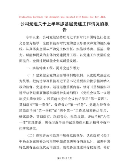 / 公司党组关于上半年抓基层党建工作情况的报告