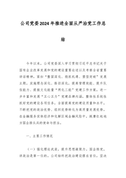 / 公司党委2024年推进全面从严治党工作总结
