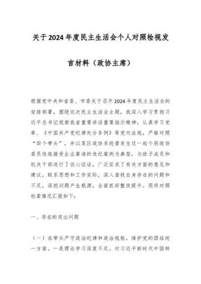 / 关于2024年度民主生活会个人对照检视发言材料(政协主席)
