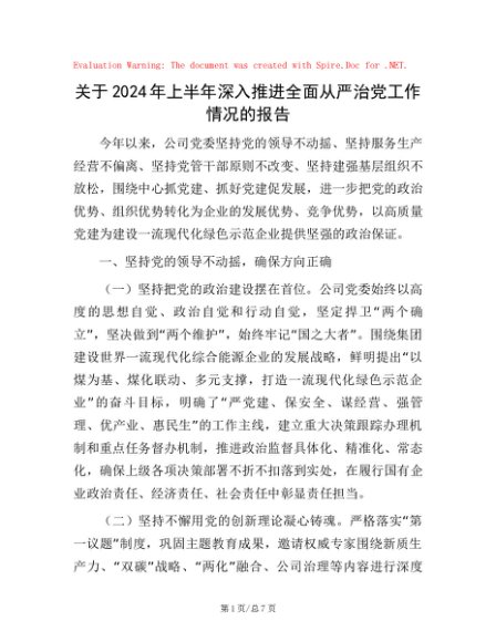 / 关于2024年上半年深入推进全面从严治党工作情况的报告