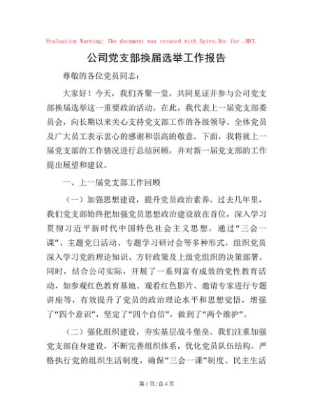 / 公司党支部换届选举工作报告