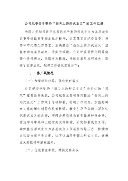 / 公司纪委关于整治“指尖上的形式主义”的工作汇报