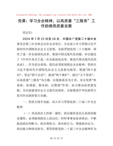 党课:学习全会精神,以高质量“三服务”工作助推高质量发展
