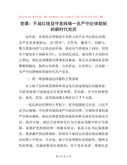 党课:不越红线 坚守底线 做一名严守纪律规矩的新时代党员
