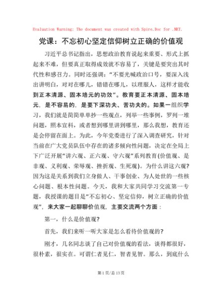 / 党课:不忘初心坚定信仰 树立正确的价值观