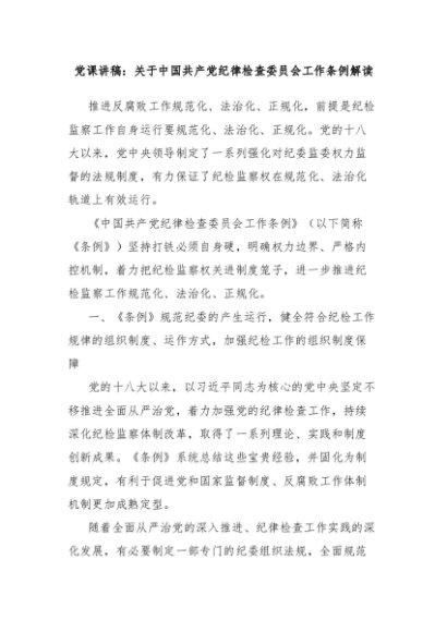/ 党课讲稿:关于中国共产党纪律检查委员会工作条例解读