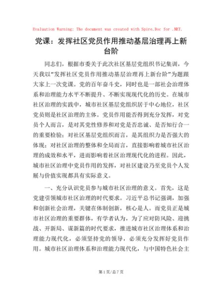 / 党课:发挥社区党员作用 推动基层治理再上新台阶