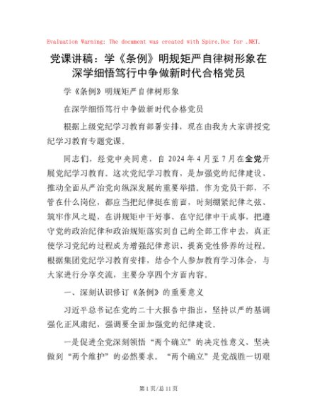 党课讲稿:学《条例》 明规矩 严自律 树形象 在深学细悟笃行中争做新时代合格党员