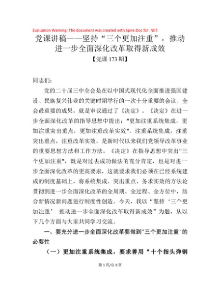 / 党课173期-坚持“三个更加注重”,推动进一步全面深化改革取得新成效