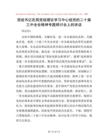/ 党组书记在局党组理论学习中心组党的二十届三中全会精神专题研讨会上的讲话