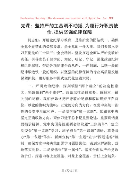 / 党课:坚持严的主基调不动摇,为履行好职责使命,提供坚强纪律保障