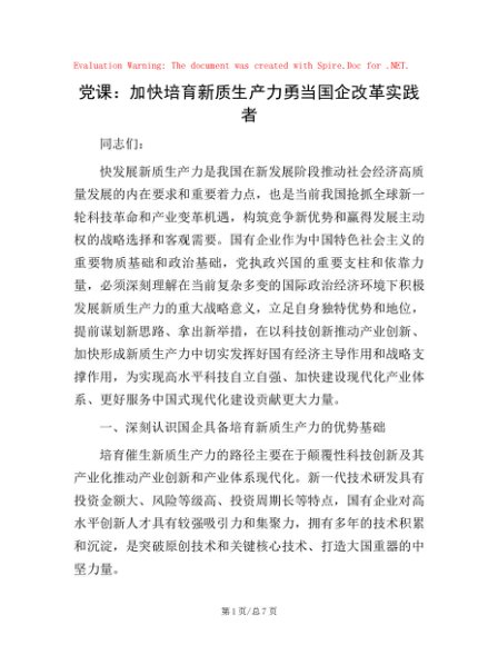 / 党课:加快培育新质生产力 勇当国企改革实践者
