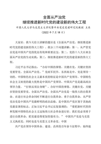 / 全面从严治党继续推进新时代党的建设新的伟大工程中国人民大学王东