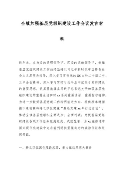 / 全镇加强基层党组织建设工作会议发言材料