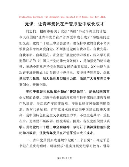 党课:让青年党员在严管厚爱中成长成才