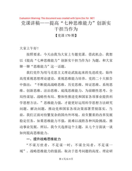 / 党课170期-提高“七种思维能力”创新实干担当作为