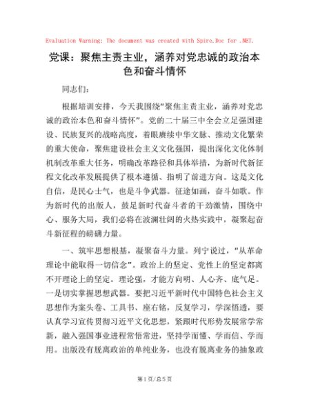 党课:聚焦主责主业,涵养对党忠诚的政治本色和奋斗情怀