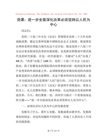 / 党课:进一步全面深化改革必须坚持以人民为中心