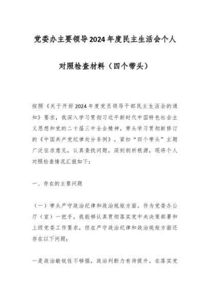 / 党委办主要领导2024年度民主生活会个人对照检查材料(四个带头)