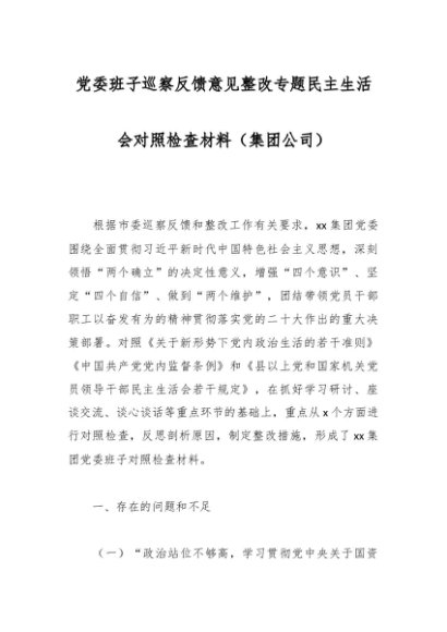 / 党委班子巡察反馈意见整改专题民主生活会对照检查材料(集团公司)