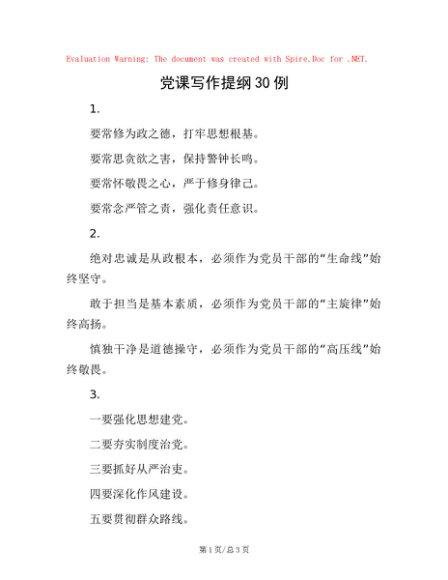 / 党课写作提纲30例