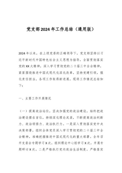 / 党支部2024年工作总结(通用版)
