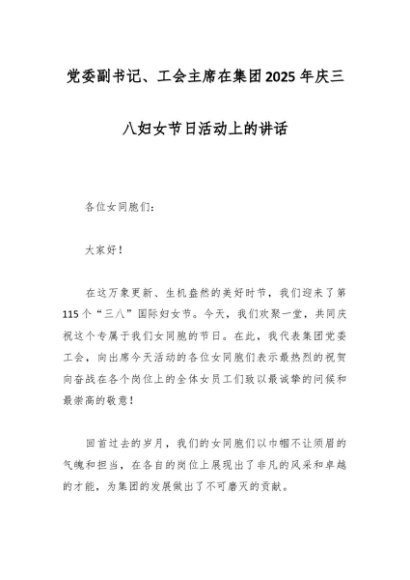 / 党委副书记、工会主席在集团2025年庆三八妇女节日活动上的讲话