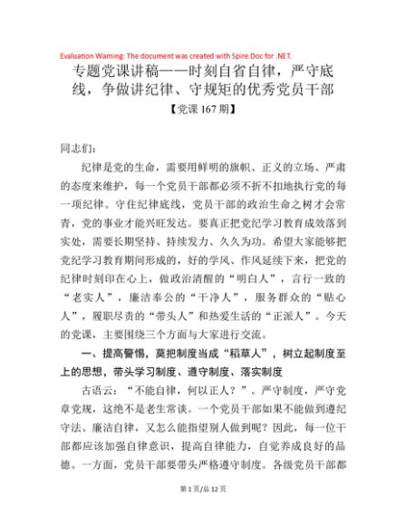 / 党课167期-时刻自省自律,严守底线,争做讲纪律、守规矩的优秀党员干部